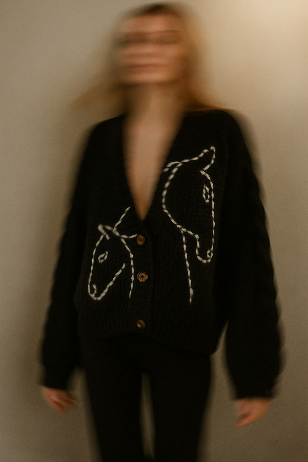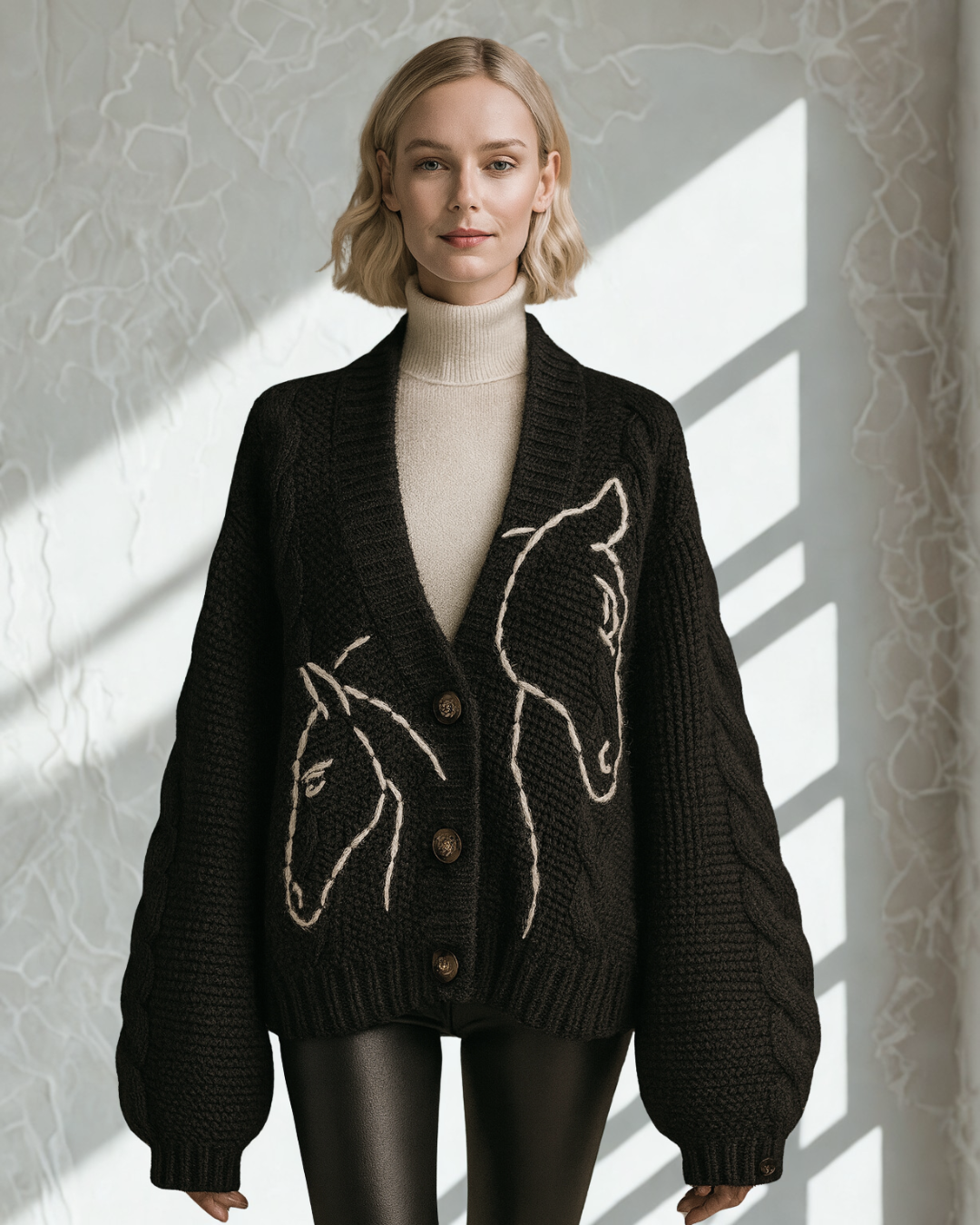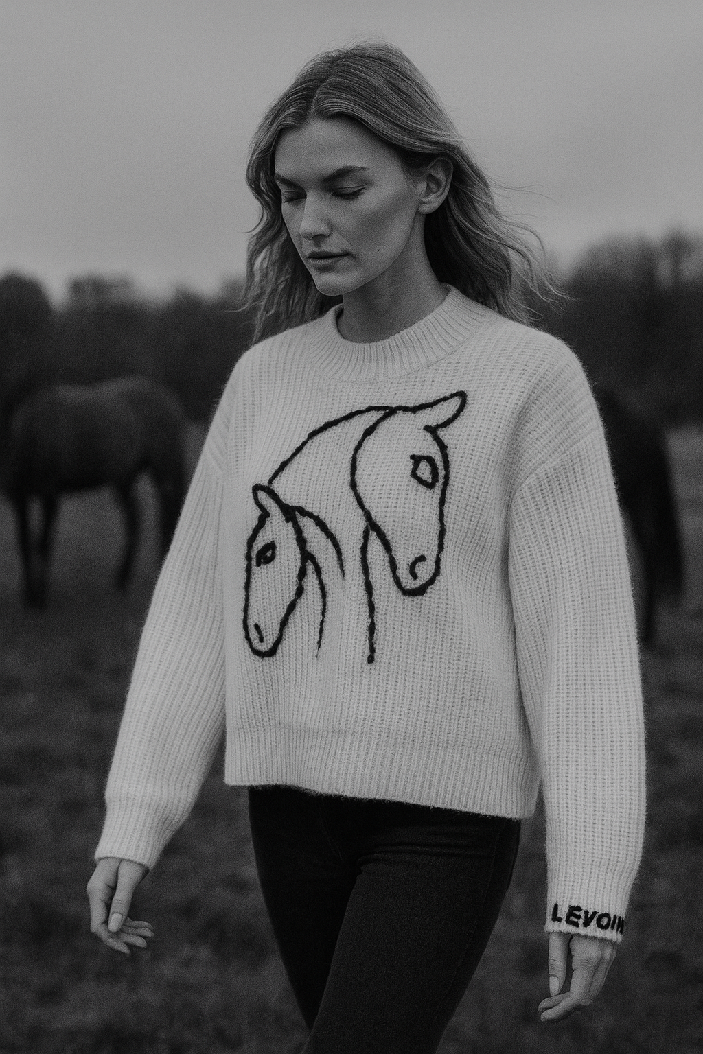 Entstanden aus dem ungezähmten Geist der Pferde und der Sanftheit von feinster Alpakawolle, feiert der Pullover Wild Grace Freiheit und Eleganz. Ein Pullover, der Wärme, Stärke und Kunstfertigkeit gleichermaßen trägt.